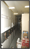 movable archival shelving system, computers, copier, digital copy stand,